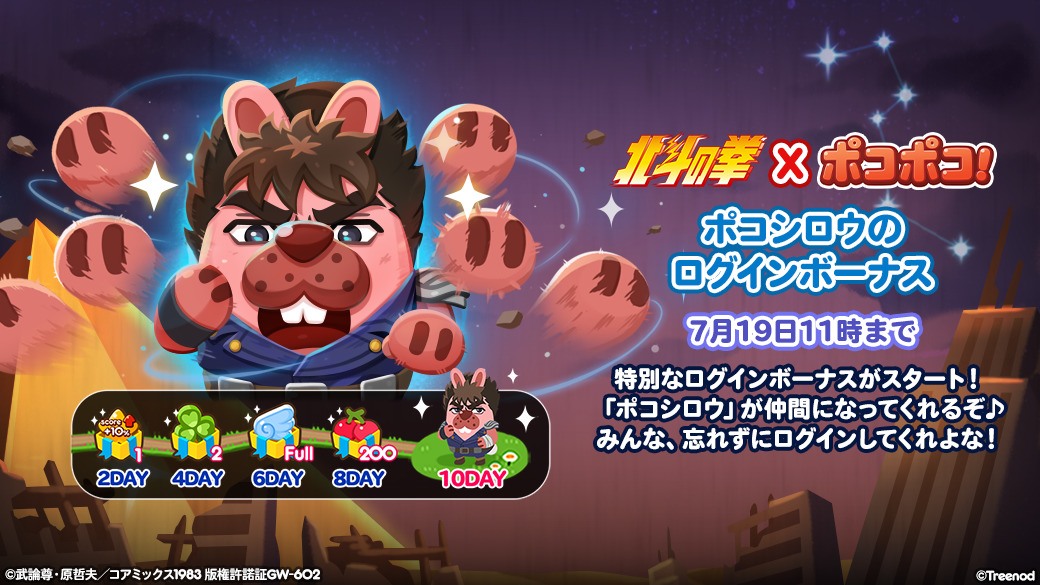 A collaboration event between the 3-match puzzle game "LINE Pokopoko" (iPhone / Android compatible / free) and "Fist of the North Star" has started today.
