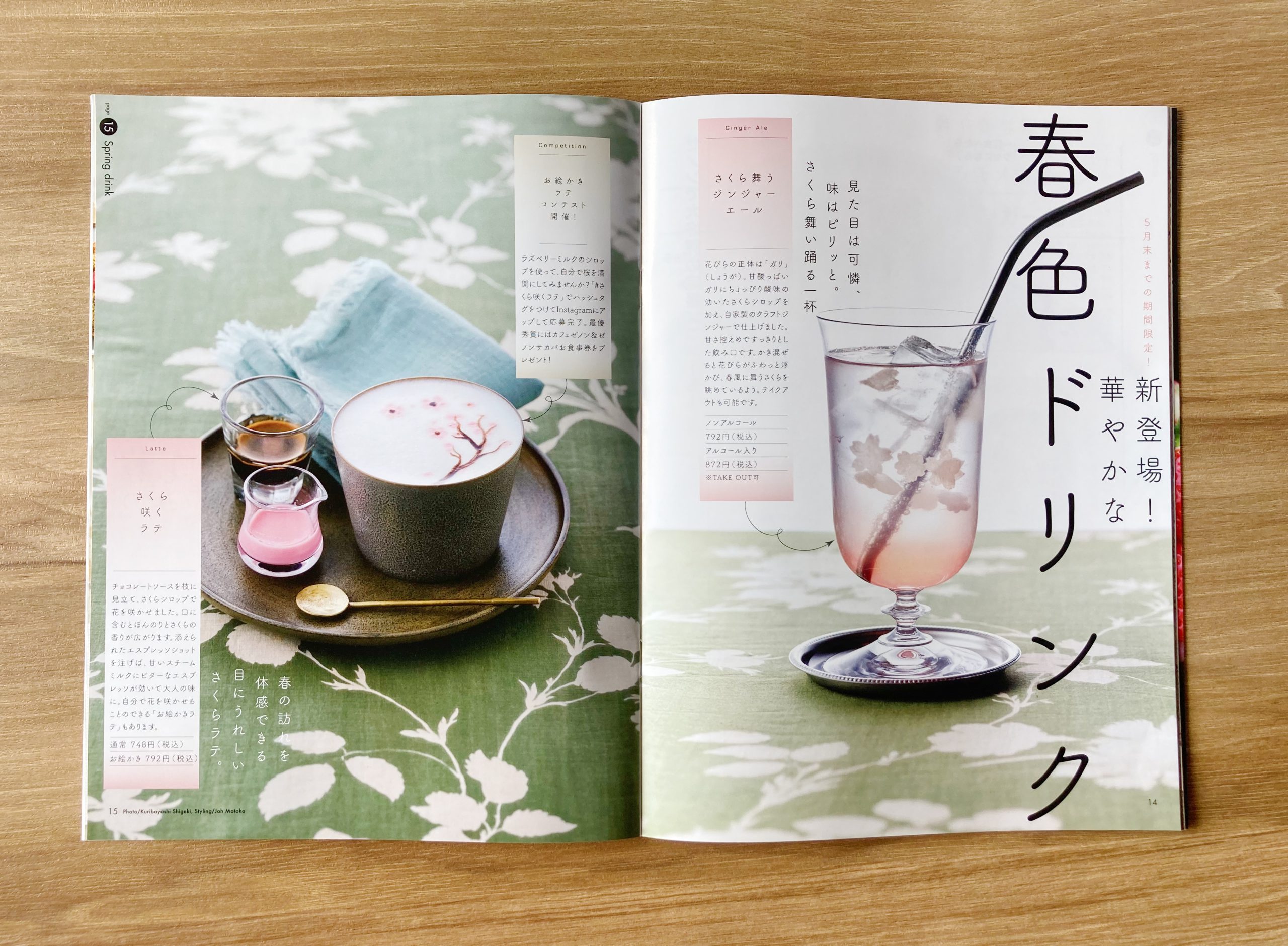 Также предлагаются весенние напитки и сладости.Вы можете почувствовать, как будто наблюдаете, как цветы сакуры танцуют на весеннем ветру.